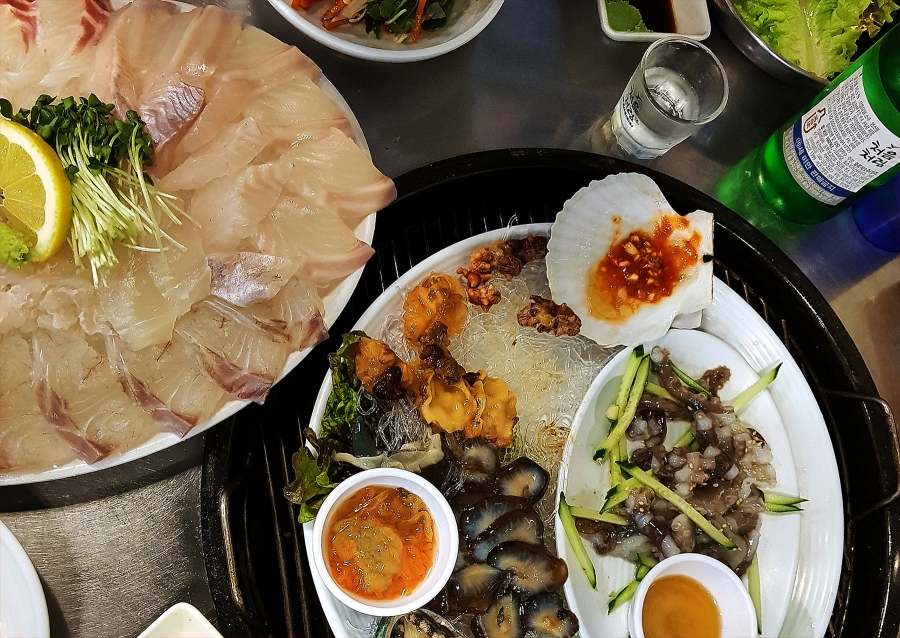 모듬회와 해산물들